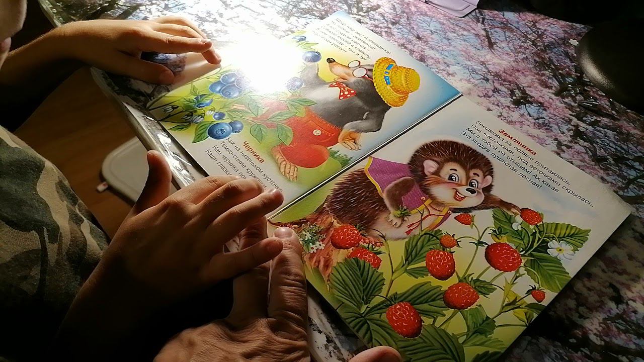 Ребенок читает по книге стихов о природе.