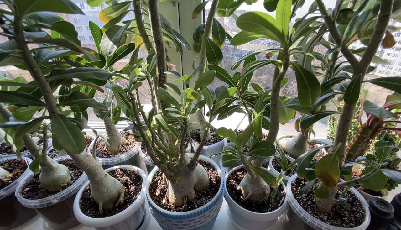 У адениума засохли рожки :( Белые бутоны. Обрезание слона. Полисциасу 15 лет. 27 марта 2023 г.