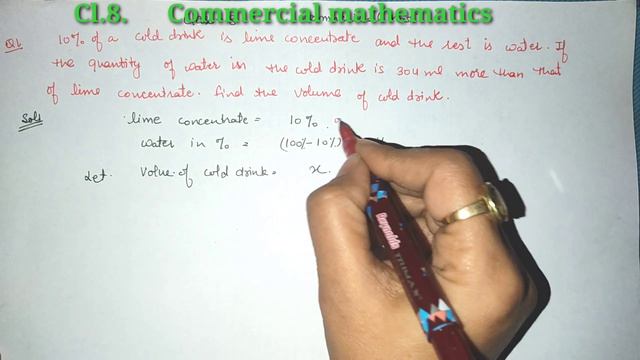 class 8 commercial mathematics maths classes 10% is a lime concentrate and just is water in Earth 304 ml cold drink find the amount of both lime and water #class8 #commercialmathematics #percentage