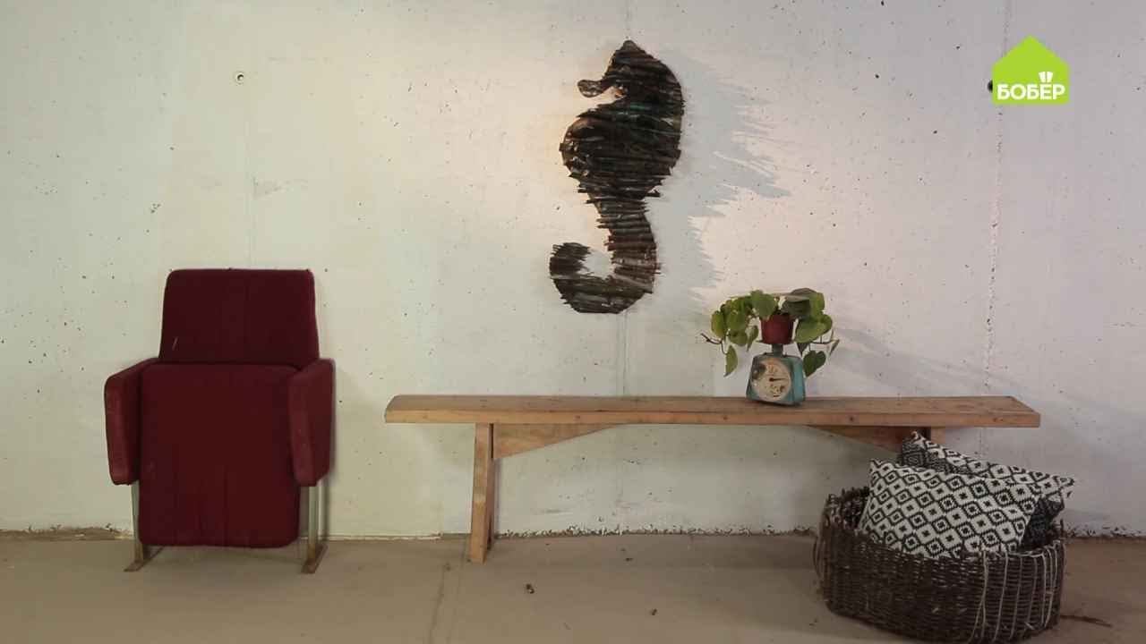 Морской конёк из ветвей / Как сделать декоративную композицию из фанеры и веток своими руками