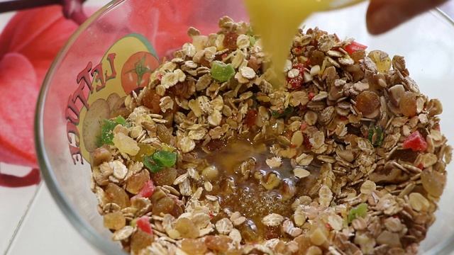ПОТРЕБУЕТСЯ: Овсяные хлопья - 300 грамм Мед - 3 столовые ложки Соль - щепотка Масло растительное - 50 грамм Сливочное масло - 50 грамм Изюм - 50 грамм Орехи - по вкусу Цукаты - 50 грамм Кокосовая стружка - 50 грамм Цедра лимона - 1 чайная ложка Семечки - смесь. #мюсли #кчаю #кулинария #выпечка #рецепты #батончики