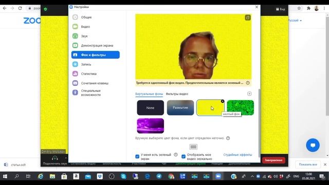 Как поменять фон в zoom