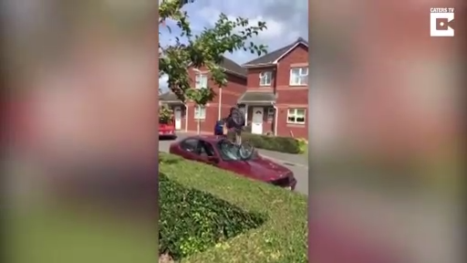 Велосипедист решил показать трюк с запрыгиванием на автомобиль, но что-то пошло не так... #трюк #автомобиль #прыжок