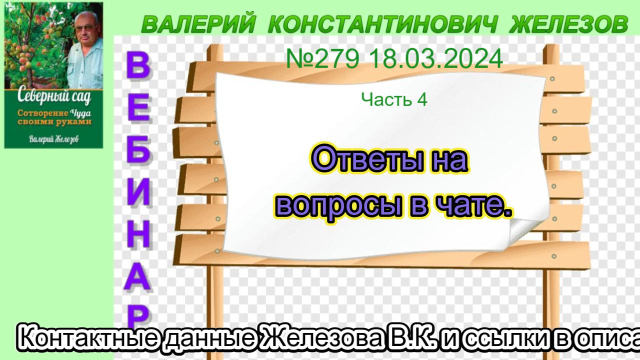 Комментарии и вопросы можно оставлять в гостевой комнате Валерия Константиновича - http://sadsib.narod.ru/gb/ Телефон Железова В.К.: +7 960 776 86 72 Сайт Железова В.К.: https://sad-sib.ru/ Эл. Почта: jelezovsadsib@mail.ru - Группа в ОК - https://ok.ru/jelezovsadsib - Группа в ВК - https://vk.com/jelezovsad - https://zen.yandex.ru/id/5a4727b2168a915b10779daf Чат в WhatsApp: https://chat.whatsapp.com/LLFENhq7J7h7YICU8uPRkl Чат в Телеграм: https://t.me/+IXSEa_e9wchkZjFi Садоводство по Железову на Youtube: https://www.youtube.com/channel/UCJqMclLm9z4lapERsEM6NPA Садоводство по Железову на Rutub: https://rutube.ru/channel/23786837/ Долматов Валерий Александрович телефон: +7 919 332 12 19 (лак мастика) Уральские саженцы от Галины Лотенковой: https://lotenkov.info/#rec537216072 Канал Лотенкова О.Ю.-Долматов В.А.-Железов В.К.: https://www.youtube.com/channel/UCZ1mqSFbgXFQE585FSiwxBQ