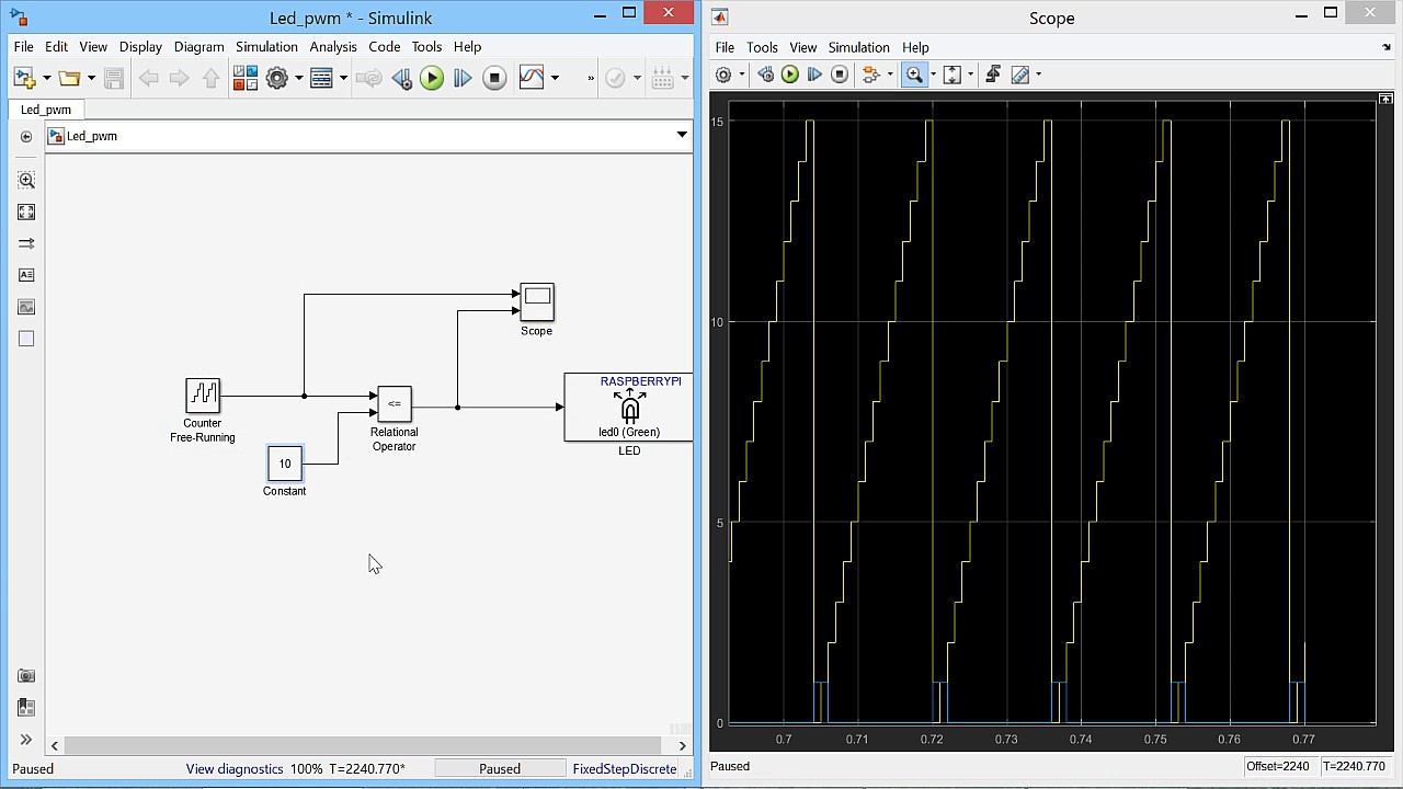 В этом видео показан пример, как создать Simulink модель для управления яркостью светодиода, на основе ШИМ модуляции, а после по кнопке за пустить модель на плате Raspberry Pi. В этом видео дорабатывается модель из первого видеоролика «Simulink и Raspberry Pi. Первые шаги, управление светодиодом»