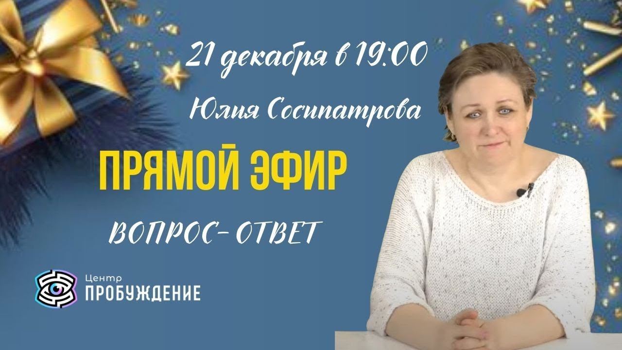 В этом эфире мы сосредоточимся на теме «Вопрос-ответ», чтобы вместе разобрать все интересующие вас вопросы и ситуации. Это уникальная возможность получить ответы на ваши насущные вопросы прямо здесь и сейчас. Вы можете задавать любые вопросы, которые вас волнуют, будь то: - отношения, - саморазвитие, - эмоциональное благополучие, - управление стрессом - или любые другие темы, которые вам интересны. Юлия ответит на каждый вопрос в прямом эфире, обеспечивая вас полезной информацией и ценными рекомендациями. Кроме того, мы также разберем конкретные ситуации, с которыми вы сталкиваетесь. Если у вас есть какой- либо вопрос или сложная ситуация, которую вы хотели бы проанализировать вместе с Юлией, не стесняйтесь делиться. Вместе мы найдем пути решения и поддержки. Присоединяйтесь к нам в прямом эфире и задавайте свои вопросы. Мы с нетерпением ждем вас и верим, что эта встреча принесет вам много пользы. Вопросы можно задавать в прямом эфире или заранее направлять на эл почту: info@probujdenie.ru _____________________ Подробнее о специалисте и консультациях на персональной странице Юлии СОСИПАТРОВОЙ https://probujdenie.ru/persony/julia_sosipatrova/ 28 ноября 19:00 Онлайн Групповая практика с расстановкой https://probujdenie.ru/avtorskaja-rasstanovka-videnie-jasnost-ponimanie-julija-sosipatrova/ Получайте еще больше полезной информации о регрессиях и других темах в телеграмм-канале Центра "Пробуждение": ✨ https://t.me/+HJKxhSQy3640MDJi Подписывайтесь в группу ВК: https://vk.cc/clbZlF Получайте полезные материалы от лучших практиков школы "Пробуждение" https://vk.cc/clc8UR