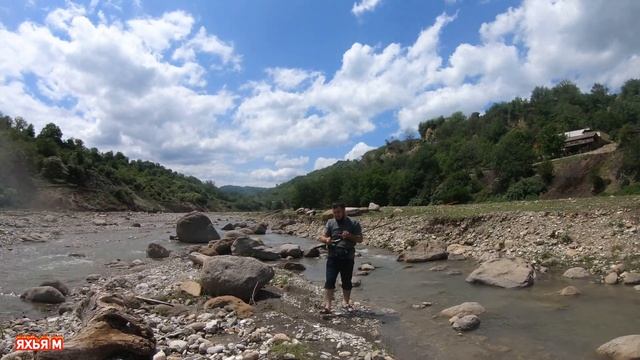 Ловля горного усача на речке Яраксу в Чечне.