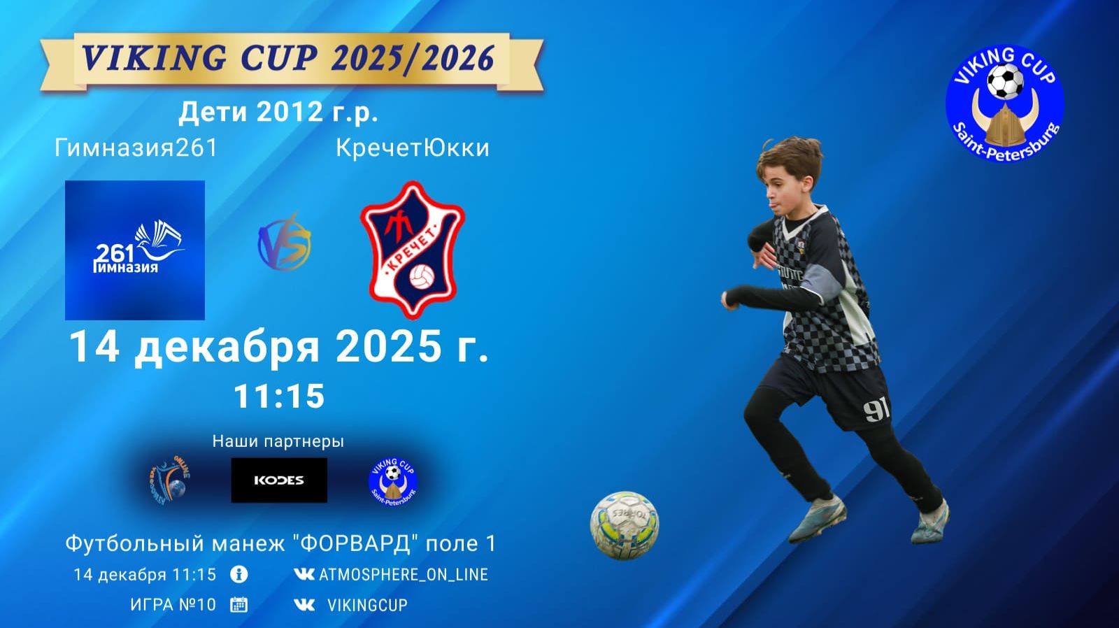 VIKING CUP среди команд 2012 г.р. (U13), Поле 1 14 декабря 2025 САНКТ-ПЕТЕРБУРГ, ФЦ "Форвард" ФК "Гимназия261" - ФК "КречетЮкки"/VIKING CUP, Игра №10, 14-12-2025 11:15
