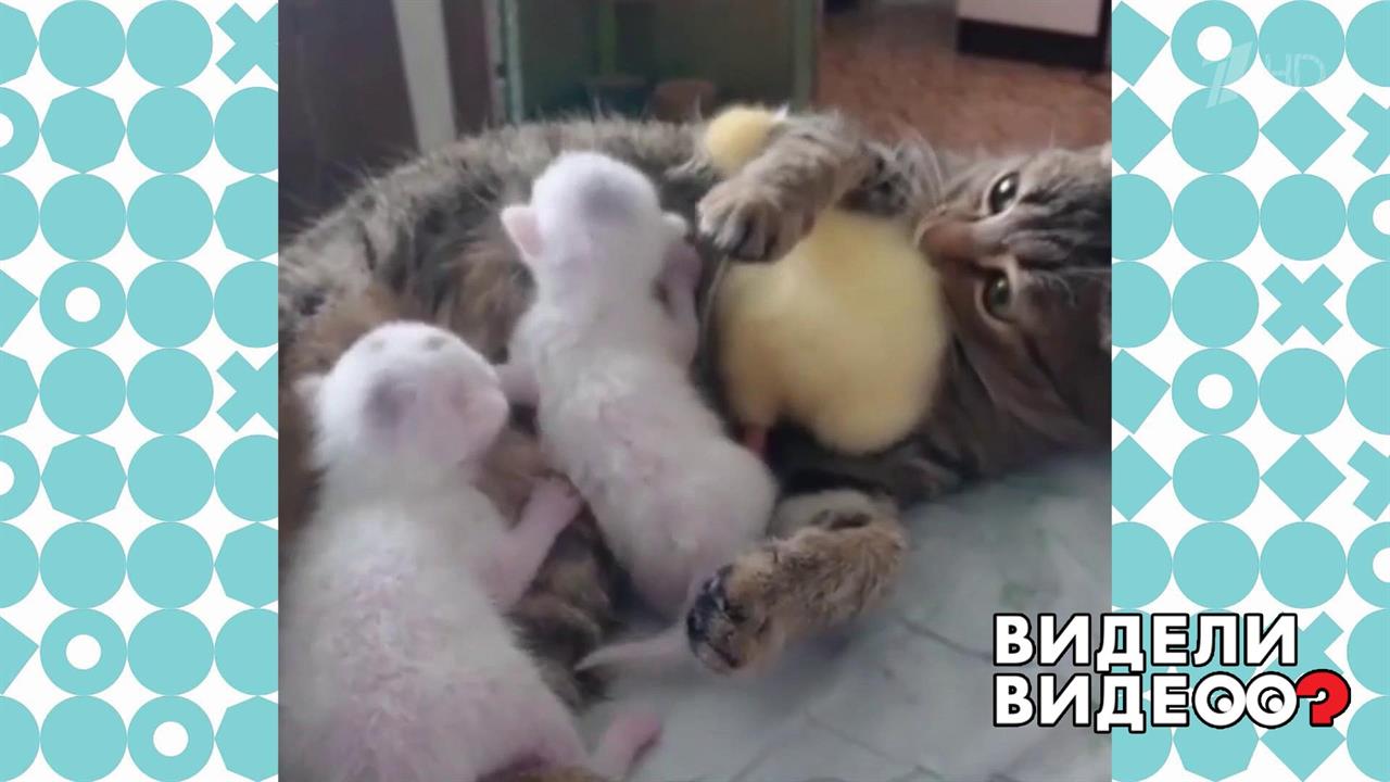 Добрая история про кошку и гусенка. Видели видео? Фрагмент выпуска от 01.11.2020