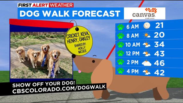 Four Goldens -- Cricket, Keva, Oakley and Henry -- were all featured during the Dog Walk Forecast on Dec. 20, 2022. You can submit your Colorado dog pictures to us too by following the link https://www.cbsnews.com/colorado/dogwalk/
