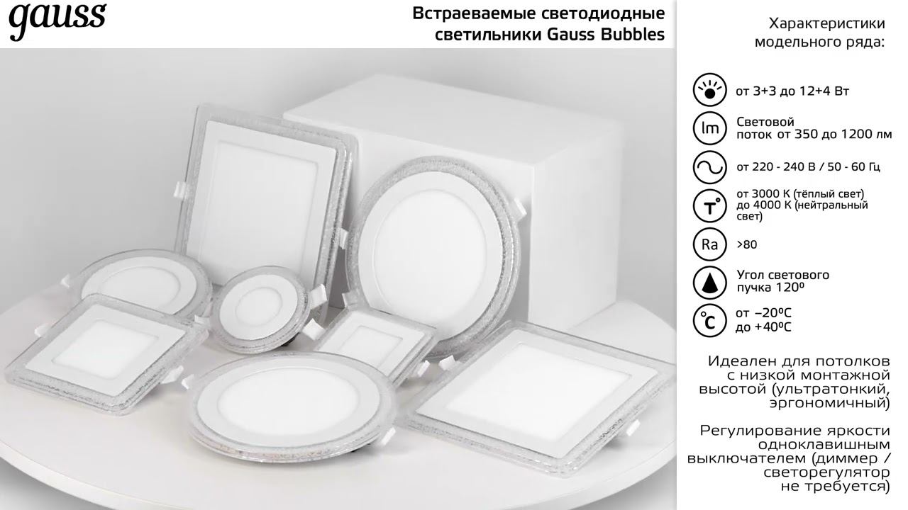Встраиваемые светильники Gauss Bubbles Артикулы: 80429809, 80429808, 80435903, 80435908, 80435907 --------------------------------------------------------------------------------- Hoff всегда рядом! Посетите наш интернет-магазин: → http://www.hoff.ru Скачивайте приложение Hoff: мебель, товары для дома, акции: → https://hoff.onelink.me/XrxB/c6451994 Подписывайтесь на нашу рассылку и получите 500 рублей за следующую покупку: → http://hoff.ru/promo/kupon_za_podpisku/