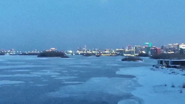Новосибирск и река Обь. Утро, зима, огни. 23.01.2025. Вид с Бугринского моста. DSBM, Psychonaut 4