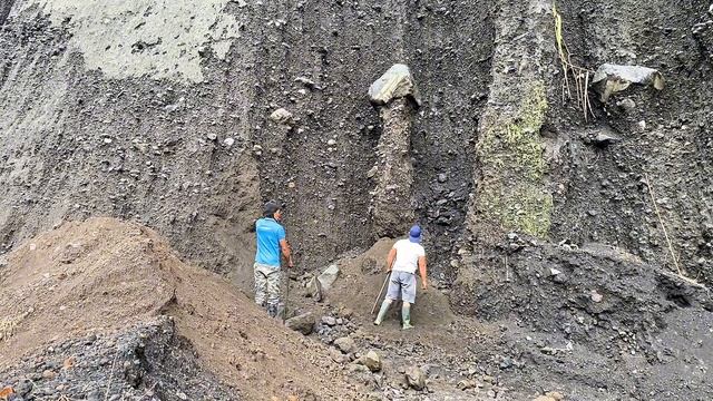 Строительство, шахтёры пытаются сбить крупный камень