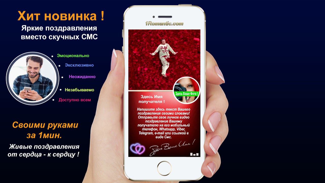 ЗАПОЛНИТЬ ЭТУ ОТКРЫТКУ СЕЙЧАС: https://1romantic.com/musicalnye-pozdravleniya/moya-lyubimaya/ Дорогие друзья! Вам остаётся только, написать нужный вам текст и загрузить свою фотографию. 1Romantic.com Является первым и единственным в мире сервисом интерактивных видео поздравлений. Мы используем собственную уникальную технологию, добавляя ежедневно самые новые и последние разработки программирования. У нас Вы можете найти поздравления на любой вкус, только высокого качества и разрешения. Согласитесь, всегда приятней, отправить поздравления от себя лично, чем пересылать чужие, с уже заготовленным стандартным и быстро мерцающим текстом, как рекламный баннер, пересылаемый друг-другу от тысячи к тысячам где нет Ваших Имён. Задумайтесь ! Это выглядит слишком наивно и как минимум глупо, особенно для людей которые умеют писать и читать (на мою розочку сверкалку или стикер и отвали). Теперь всё будет иначе ! Вы можете сами передать своё настроение, тем людям, которым Вы будете адресовать своё поздравление. Теперь Вы сами, творец, художник и поэт своих чувств, наполняя видео открытку своими словами, излучая только самое доброе, искреннее из своих тёплых сердец. Загрузить свою любимую фотографию или фотографию получателя, что безусловно, будет гораздо приятней и неожиданней для него) Безусловно, мы подумали и о музыкальном оформление. Наверняка, Вы будете подбирать нужные слова и фотографию под ту песню, которую Вы захотите загрузить сами, а не ту которую Вам навязывают. Ну и самое главное, Вы можете использовать функцию добавления своего голоса, программа сама наложит Ваш голос на начало загруженной песни. Поверьте это очень оригинально, особенно если Ваш друг не слышал Вас долгие годы. Такое поздравление можно сделать действительно за 30-60 сек. Но если Вы творческий человек, оно не отпустит Вас так быстро))) И Вы будете думать, сочинять, плакать, улыбаться, восхищаться, раскрыв в себе новые таланты... возможно это станет Вашим первым собственноручным творением . Удачи Вам ! С уважением, Ваши Романтики ! Краткий список предлагаемых нами поздравлений... Поздравления с днем рождения женщине. Поздравления с днем рождения мужчине. Поздравления с днем рождения другу. Поздравления с днем рождения подруге. Поздравления с днем рождения для детей. Поздравления с днем святого Валентина. Поздравления Папе. Поздравления с днем рождения Маме. Прикольные поздравления. Видео поздравления с днем рождения. Музыкальные поздравления с днем рождения. Слайд-шоу с днем рождения. и многое-многое другое.