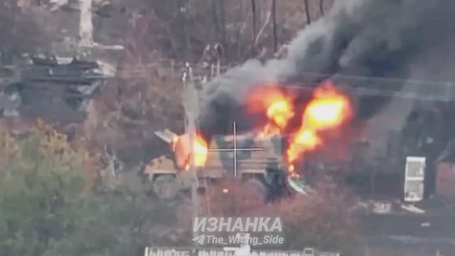 Уничтожение гаубицы ВСУ «Ланцетом» с пожаром бк и бронеавтомобиля BMC Kirpi