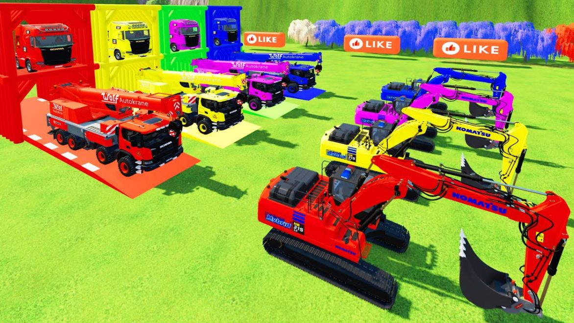 КАТАЕМСЯ НА КРУТЫХ РАЗНОЦВЕТНЫХ МАШИНКАХ И ГРУЗОВИКАХ ИЗ МУЛЬТИКОВ ДЛЯ ДЕТЕЙ 🚜