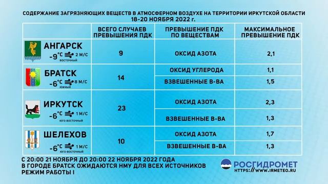 [21.11.2022] Мониторинг состояния атмосферного воздуха 18-20.11.2022