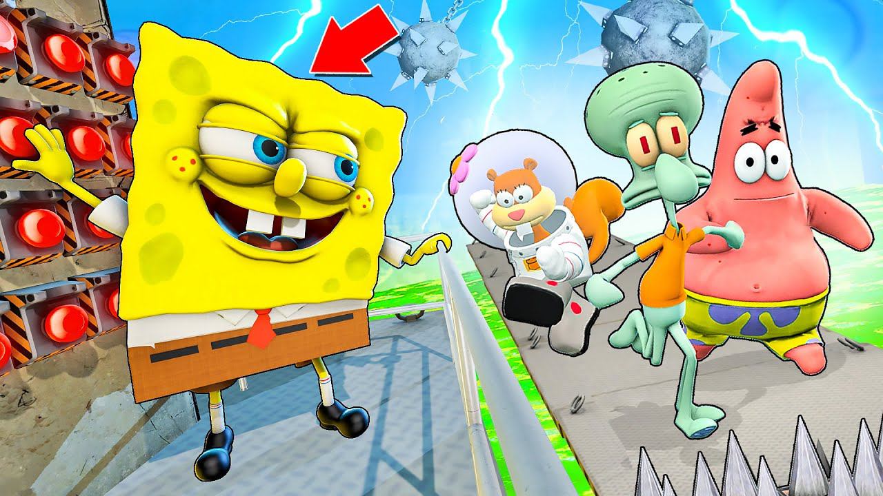 СПАНЧ БОБ ПРОТИВ ДРУЗЕЙ! КТО ОСТАНЕТСЯ В ЖИВЫХ? ОПАСНАЯ ДОРОГА СМЕРТИ В Garry`s Mod