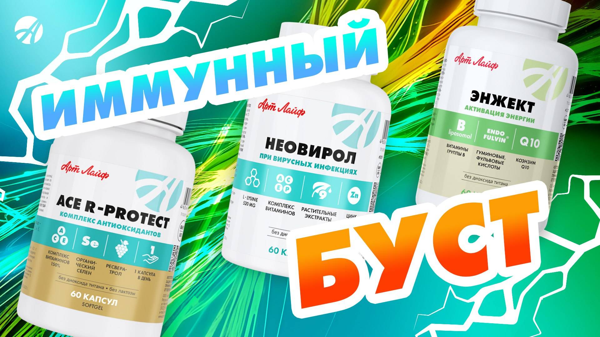 В осенне-зимний период повышается риск простудных и вирусных заболеваний. Поддержка иммунитета в такие периоды способствует эффективной профилактике заболеваний, ускорению выздоровления, поддержанию общего здоровья, повышению энергии и работоспособности. Имунный буст от Артлайф поможет укрепить защитные силы вашего организма: «НЕОВИРОЛ» – комплекс усиленного противовирусного и антибактериального действия. Оказывает выраженное иммуномодулирующее, противовоспалительное, антибактериальное и общеукрепляющее действие. https://shop.artlife.ru/catalog/zdorove/neovirol-60-kaps «ЭНЖЕКТ» – источник внутренней энергии, необходим организму для восстановления энергообеспечения и энергообразования. Компоненты, входящие в состав комплекса «Engect», способствуют улучшению энергообмена, контролируют процесс тканевого дыхания, участвуют в транспорте важных соединений. https://shop.artlife.ru/catalog/zdorove/engect-enzhekt-60-kaps «ACE R-PROTECT» – комплекс содержит 5 незаменимых антиоксидантов: витамины А, С, Е, ресвератрол и селен, способствующие снижению окислительного стресса и повышению уровня антиоскидантной защиты. https://shop.artlife.ru/catalog/zdorove/ace-r-protect БАД. Не является лекарственным средством. Присоединяйтесь к Артлайф и всегда оставайтесь в курсе самых интересных новостей компании. 🔺 Официальный сайт компании https://www.artlife.ru/ 🔺 Artlife Media, официальный rutube-канал https://rutube.ru/channel/24722323/ 🔺 Artlife Media, официальный youtube-канал https://www.youtube.com/@ArtlifeMedia/ 🔺 ВКонтакте https://vk.com/artlife.official 🔺 Одноклассники https://ok.ru/artlife.official #артлайф #бад #wellness #beauty
