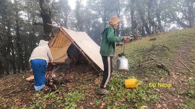 the himlayan shepherd hunting water pastoral life and milking sheep in shelter making simple rice pudding amezing life style shepherds life