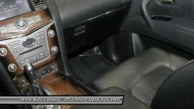 http://willisautocampus.vidmagnet.com/ava/apps/vsp.php?vehicle_fkey=A5F13ED9-8212-9835-45A3-FCBB075F818F Willis Auto Campus sells and services Infiniti, Volvo, CADILLAC, Land Rover, Jaguar, Lexus, MINI vehicles in the greater Des Moines area. Willis Auto Campus | New, Infiniti, Volvo, CADILLAC, Land Rover, Jaguar, Lexus, MINI, dealership, Des Moines, IA, 50325 2012 Infiniti QX56 - $47901 http://www.willisautocampus.com For more information on this vehicle and our full inventory, call us at 800-568-0497 Willis Auto Campus 2121 NW 100th St. Des Moines IA 50325 LOCAL TRADE, ONE OWNER, 4WD, and CLEAN AUTO CHECK. brbr-Rear DVD Entertainment.br-Navigation System.br-Third / 3rd Row Seating.br-Power moonroof / sunroof.br-Blind Spot Warning.br-Heated and Ventilated Front Seats.brbrDeluxe Touring Package (Advanced Climate Control System, Bose Studio Surround Sound System, Headlight Washers, Hydraulic Body Motion Control System, and Mocha Burl Trim)brbrTechnology Package (Adaptive Front Lighting System, Blind Spot Warning, Front Pre-Crash Seatbelts, Intelligent Brake Assist (IBA), and Intelligent Cruise Control (Full-Speed Range))brbrTheater Package (120V Power Outlet, Dual 7 Color Monitors, Heated 2nd-Row Seats, and Wireless Headphones), Tire and Wheel PackagebrbrWILLIS PRE-OWNEDbr Our Willis Pre-Owned vehicles are a special group of quality, previously-owned cars, trucks, vans and SUV's.br br-Willis Multi-Point Quality Inspection br-Fully reconditioned br-Willis Complete Auto Detail br-30 Day / 2,000 Mile, 50/50 Limited Warranty br-Qualifies for extended service contract br-Vehicle receives oil change & filter.brbr*Prices do not include tax, title, license, dealer fees or dealer installed options. The prices shown above, may vary as will incentives, and are subject to change. Call or email for complete vehicle specific information. Vehicle availability subject to prior sale.