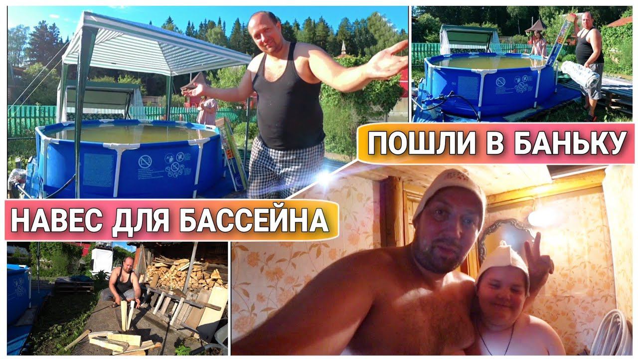 ВЛОГ! Пошли в БАНЮ с Димкой//Поставили садовый шатёр над бассейном//Дачные будни/Моя семья/ПроЖизнь!