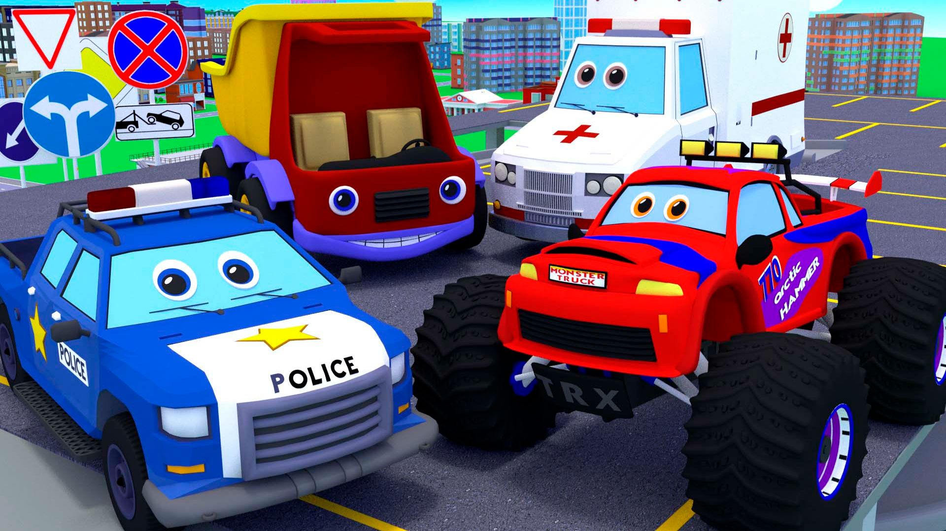 СБОРНИК МУЛЬТИКИ ПРО МАШИНКИ Полицейская машина Скорая помощь, пожарная машина. Учим виды транспорта