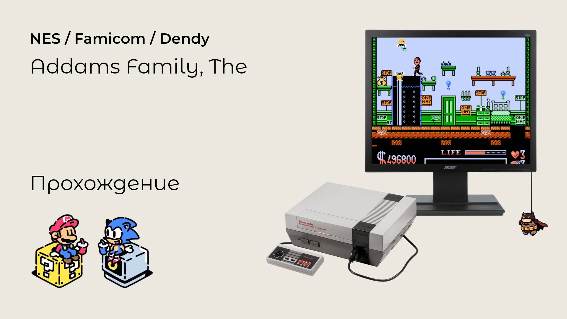 Addams Family - это самый обычный платформер, с простой графикой и неважной анимацией, а с другой стороны - у нее очень классный геймплей, и игра очень сильно затягивает. Она немного мрачная, но в то же время очень милая. В ней просто изобилуют элементы классических фильмов ужасов, но все они преподносится в такой форме, что на лице невольно появляется улыбка. Заходите на наш сайт: https://consolgame.ru #nes #adventuresisland #retrogames #nintendo #dendy #consolgame #прохождение