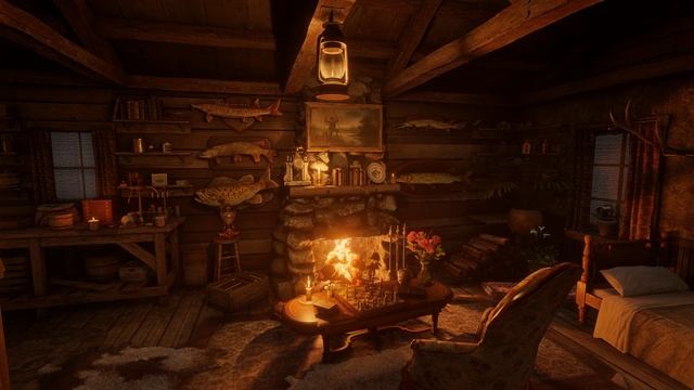 В тёплом свете камина, пламя которого весело трещит, уютная рыбацкая хижина пряталась от бушующих стихии за старыми, покосившимися стенами. Внешние миры были завуалированы непрекращающимся ливнем, грады, подобно мелким жемчужинам, разбивались о землю, создавая тихое, но настойчивое дробление. Гром гремел, напоминая о себе с каждым ударом, как напоминание о непреклонной силе природы. В этой хижине время словно остановилось, а заботы мира наружу растворились в шорохе дождя. На каминной полке, покрытой слоем пыли и солёного ветра, стояли древние рыбацкие трофеи — потемневшие от времени узлы, обрывки сетей и прочие загадочные приметы моря. В углу, на скромном столе, сохранились роскошные литературы о морских путешествиях, каждая страница которых напоминала о том, как близок и в то же время далёк стал океан. Здесь, в тишине, нарушаемой лишь шёпотом дождя и глухим, умиротворяющим громом, казалось, можно было услышать биение сердца рыбака, преданного своим мечтам, чьё тепло согревало этот мир, оставаясь сокровищем среди непрекращающегося шторма. ИНФО Это видео создано из на основе Red Dead Redemption 2, записано мною и отредактировано в видеоредакторе и добавлены новые звуковые эффекты. Цель этого видео создать для Вас уютную атмосферу для сна и отдыха, учёбы или чтения. Звуки дождя и грома, вутра и метели могут стать прекрасным фоном для сна, оказывая успокаивающее влияние на организм. Мягкое шуршание капель, стук дождя о крышу и далекий гул грома создают атмосферу уюта и спокойствия, которая способствует расслаблению. Эти природные звуки помогают заглушить отвлекающие шумы городской жизни, позволяя разуму отключиться от повседневной суеты. Доказано, что звуки природы имеют положительное влияние на качество сна. Они снижают уровень кортизола, гормона стресса, и активизируют расслабляющие механизмы в мозге. Это приводит к более глубокому и непрерывному сну, что крайне важно для восстановления организма. Кроме того, дождь и гром могут вызывать приятные ассоциации и воспоминания о детстве, когда мы укрывались от непогоды, чувствуя себя в безопасности. Таким образом, эти звуки не просто способствуют расслаблению, но и создают эмоциональную поддержку, помогая успокоить мысли и подготовить тело к полноценному отдыху. Включение звуков дождя и грома в ночные ритуалы может стать отличным способом улучшить качество сна и обогатить наше восприятие окружающего мира.