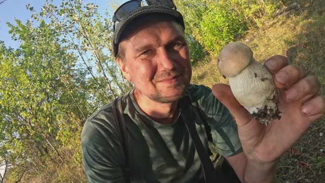 ОТец ищет грибы в последний день лета 2025г
