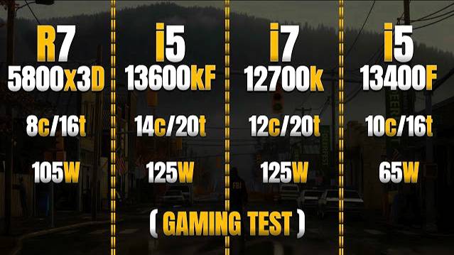 Ryzen 7 5800x3D vs i5 13600KF vs i7 12700K vs i5 13400F : (RTX 4070 Ti SUPER) : Ultimate Comparison =======(Timestamps)======= 0:00 R7 5800x3D CPU-Z Test 0:56 i5 13600KF CPU-Z Test 1:46 i7 12700K CPU-Test 2:39 i5 13400F CPU-Test 3:45 Hitman 3 4:50 Starfield 6:04 Star Wars Jedi Survivor 7:20 A Plague Tale Requiem 8:31 Spider Man Remastered 9:46 Red Dead Redemption 2 10:59 Hogwarts Legacy 12:19 The Last Of Us Part I 13:40 Spider Man Miles Morales 14:55 Cyberpunk 2077 16:15 God Of War 17:13 Forza Horizon 5 18:27 Counter strike 2 19:37 COD Warzone 2.0 =======(MY PC SPEC)======= PC 1: ◆ Mobo : Gigabyte Aorus master B550 https://amzn.to/3rtTSDi ◆ Processor : AMD Ryzen 7 5800x3D https://amzn.to/3szZRqI ◆ Ram :XPG 4x8GB = 32gb 3600mhz https://amzn.to/3U58xBn ◆ GPU : Galax RTX 4070 Ti Super 16GB GDDR6x - EX Gamer White ◆ OS : Windows 10 - Version 22H2 ◆ XPG S40G 512GB RGB M.2 https://amzn.to/3NBVeV4 ◆ Corsair HX1000i Fully Modular (1000w) https://amzn.to/3OxVxUg ◆ Logitech Gaming Mouse https://amzn.to/3lB3vAi PC 2: ◆ Mobo: Asus Rog Strix B660-A Gaming Wifi D4 Not Same: https://amzn.to/3RkBE3C ◆ CPU 1: Intel Core i5 13600kf Processor https://amzn.to/4bPK2Sg ◆ CPU 2: Intel Core i7 12700k Processor https://amzn.to/3UUDfR7 ◆ CPU 3: Intel Core i5 13400f Processor https://amzn.to/3uyEXwU ◆ GPU : Galax RTX 4070 Ti Super 16GB GDDR6x - EX Gamer White ◆ Ram: Corsair 4x8GB DDR4 3600mhz Ram https://amzn.to/46QicS5 ◆ SSD: Samsung 500GB SSD https://amzn.to/45zaTxq ◆ OS : Windows 10 - Version 22H2 ◆ M.2 SSD: XPG GAMMIX S70 Blade 1TB M.2 Gen 4 https://amzn.to/3uy80k1 ◆ PSU: DeepCool PQ850M 80PLUS Gold (850w) https://amzn.to/4bpiovb =======(Social Media)======= Instagram ► https://www.instagram.com/gaming_bench/ Facebook ► https://www.facebook.com/Gaming-Bench-109041743952058/ Note: Some Of These CPUs Provided by GAMES & GEEKS Pakistan. Get Special Discount While Sharing My Reference ;) G&G FP Page: https://www.facebook.com/GAMESANDGEEKSPK/ ===== For Business Inquiries:- GamingBench07477@gmail.com ===== Thanks for Watching! ===== Disclaimer:- These video games are a work of fiction. The vehicles, weapons, fighting, blood, etc. may have been adjusted to fit into these video games. All characters appearing in these games are fictitious. Any resemblance to real persons, living or dead, is purely coincidental. There is no relation between these video games with real life.