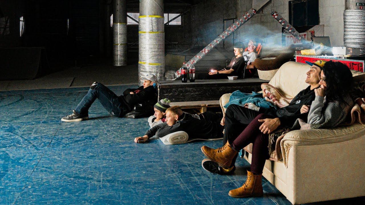 Ночь в закрытом скейт парке, смотрим кино и немного крутых трюков))))
