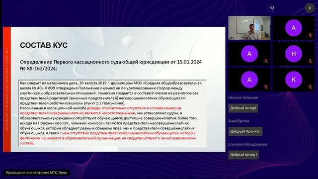 Дата проведения вебинара — 08 ноября 2024 года Ведущий вебинара, Матвеев Виталий Юрьевич, рассмотрел вопросы формирования комиссии по урегулированию споров между участниками образовательных отношений, другие особенности ее правового статуса, а также ответил на поступившие вопросы