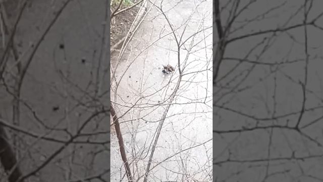 Ястреб напал на голубя, рядом проходил кот.
