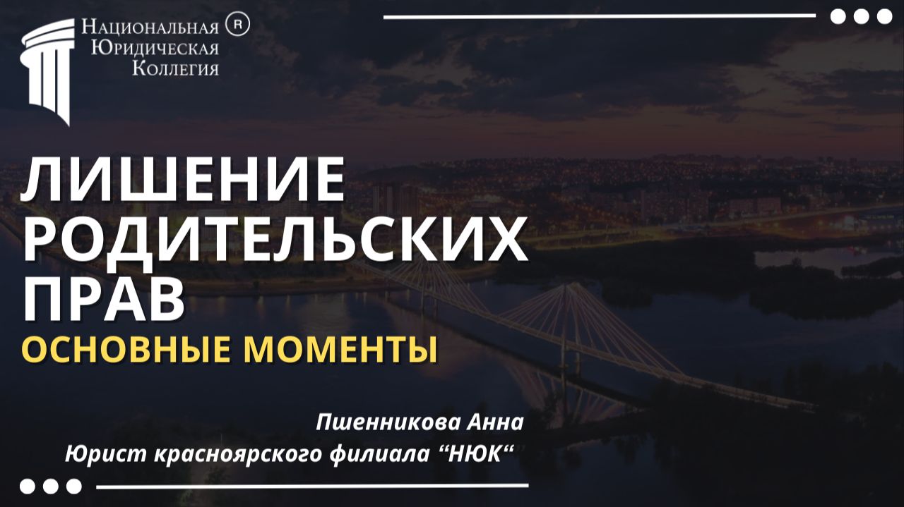 Узнайте, как инициировать лишение родительских прав — даже если родитель уклоняется от общения с ребёнком, злоупотребляет алкоголем, применяет насилие или вовсе скрывается от обязанностей. От профессионального семейного юриста Национальной Юридической Коллегии Пшенниковой Анны (г. Красноярск)! Подробности, консультация или заказ сопровождения — на странице: https://nuk-ru.ru/services/semeiniy-urist/lishenie-roditelskikh-prav/ Мы поможем даже в самых сложных случаях: когда ответчик скрывается, не приходит в суд, манипулирует ребёнком или имеет «хорошую» характеристику на работе. Подготовим доказательства (фото, видео, свидетельские показания, акты органов опеки), проведём психологическую экспертизу, соберём документы от полиции, наркодиспансера или школы — и добьёмся решения суда, которое защитит ребёнка и снимет с вас груз постоянного страха и ответственности за чужую безответственность. Обращайтесь за бесплатной консультацией удобным способом: по телефону, e-mail, через форму на сайте, онлайн-чат или закажите обратный звонок — перезвоним в течение 5 минут. —————————————————————————— ✅ Выиграем дело — по договору или за % от результата 🔍 Проверим, достаточно ли оснований для лишения (в т.ч. при «формальном» участии родителя) 📊 Оценим перспективы до начала работы — без прикрас ⚖️ Подберём стратегию: досудебное урегулирование, работа с органами опеки или сразу — в суд 📄 Подготовим иск, ходатайства, запросы в МВД, школу, поликлинику, наркодиспансер 🗣 Представим ваши интересы в суде и у приставов — без вашего участия 💡 Подскажем, как оформить усыновление/удочерение после лишения прав ⚠️ Честно расскажем о рисках — включая возможность обжалования и участия третьих лиц —————————————————————————— Национальная Юридическая Коллегия — федеральная компания с офисами более чем в 100 городах России. В команде — свыше 70 узкопрофильных юристов, включая специалистов по семейным спорам и защите прав детей. Работаем только с проверенными экспертами, имеющими реальный опыт по делам о лишении родительских прав и действующие профессиональные допуски. 📞 Запись на бесплатную консультацию: 🌐 https://nuk-ru.ru ☎ 8 800 550 1302 — звонок по России бесплатный