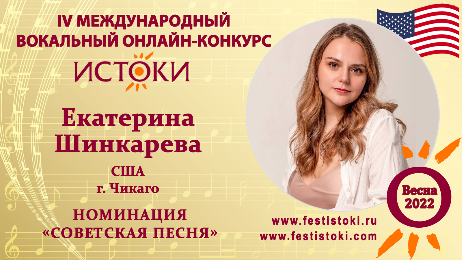 Лауреат II степени IV Международного вокального онлайн-конкурса «Истоки».Весна-2022. Номинация "Советская песня". Песня "Там нет меня". Музыка Игорь Николаев, слова Павел Жагун. Сайт: www.festistoki.ru / www.festistoki.com E-mail: festistoki@mail.ru