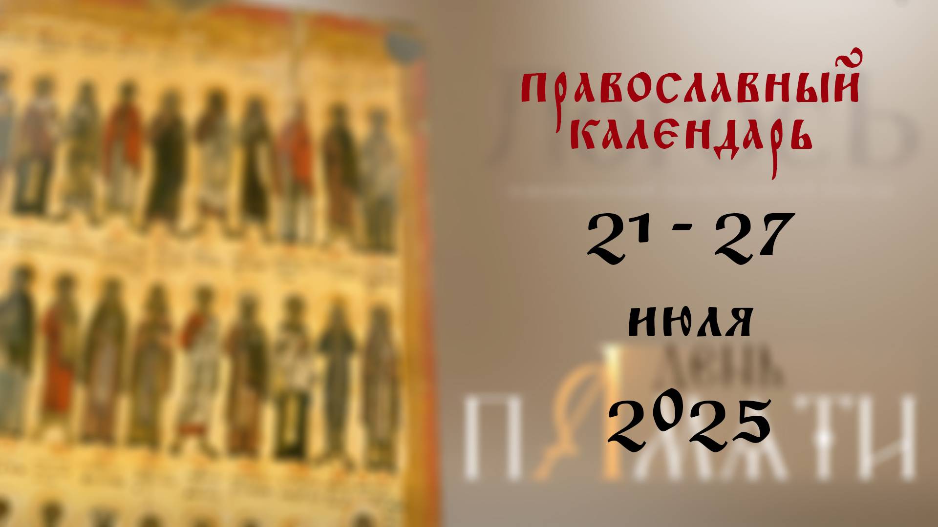 Православный календарь 21 - 27 июля 2025 года