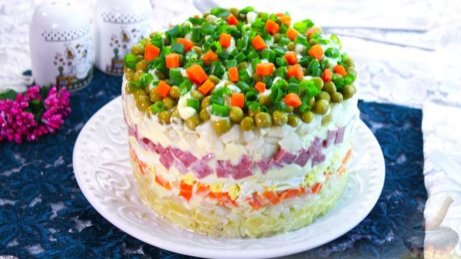 СЛОЁНЫЙ САЛАТ "ОЛИВЬЕ" С ГРУШЕЙ