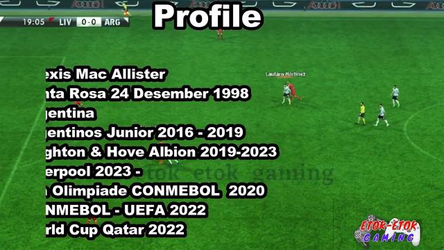 PES 2013 | Next Season Patch 2023-UPDATE OPTION FILE 2023 PS4 PS5 PC | Profil Alexis Mac Allister