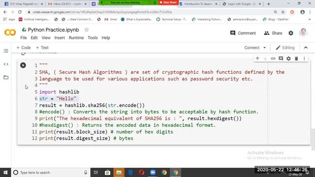 This 10 minutes video demonstartes the generation of a hash code using SHA 256 algorithm in Python . 64 characters long Hexadecimal Hashcodes are generated in applications where Blocks in a Blockchain are encryoted using these hash functions. In my next video, I will come up with generation of a genesis block (first block) in a blockchain and how to create a simple blockchain in python.