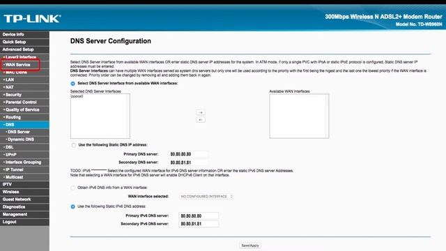 Freenom World ist ein schneller und anonymer öffentlichen DNS-Resolver. Dieses Video zeigt, wie Sie Ihre DNS-Einstellungen für den folgenden Router/Zugangspunkt ändern TP-Link TD-W8960N. Stellen Sie Ihre DNS auf 80.80.80.80 und 80.80.81.81 ein, um heute noch schnell und anonym zu surfen.