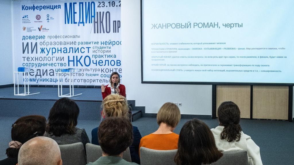 Видеозапись мастер-класса «Не "просто работа": как найти сюжеты в буднях сотрудников НКО». Ведущая — Алеся Атрощенко, филолог, сооснователь Школы литературных практик. Мастер-класс состоялся 23 октября 2025 года в рамках ежегодной конференции «Медиа/НКО}профи» 2025. Организаторы конференции — Агентство социальной информации и центр «Благосфера». В 2025 году конференция проведена при поддержке Фонда президентских грантов (проект «Проводники социальных изменений») и Благотворительного фонда Владимира Потанина (проект «НКО-профи»). Альманах «Действующие лица: благотворительность в современной российской литературе» с рассказами о людях, работающих в НКО, доступен в электронном виде. Можно и почитать, и послушать на Литрес (https://vk.cc/cRjota), Яндекс.Книгах (https://vk.cc/cPskdo), «Строках» (https://vk.cc/cPskeF), Amazon (https://vk.cc/cPskge), Apple Books (https://vk.cc/cPskhJ). Книга распространяется бесплатно. Фото: Вадим Кантор / АСИ
