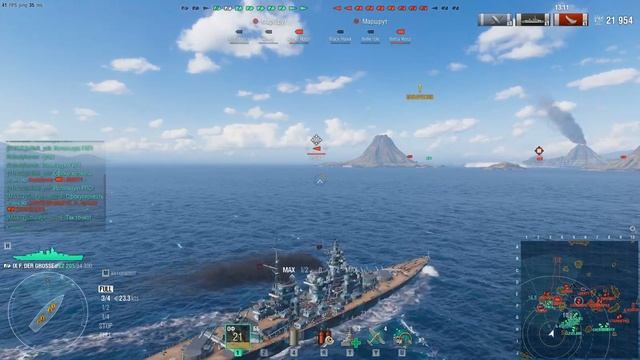 WoWS. Немецкий линейный корабль 9 ур., F. DER. GROSSE, в режиме конвой..mp4