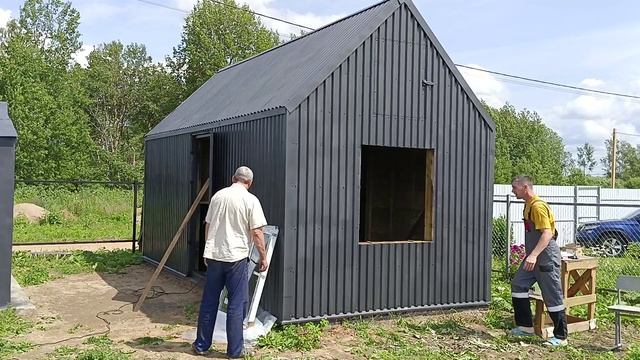 Установка окон в бане.
