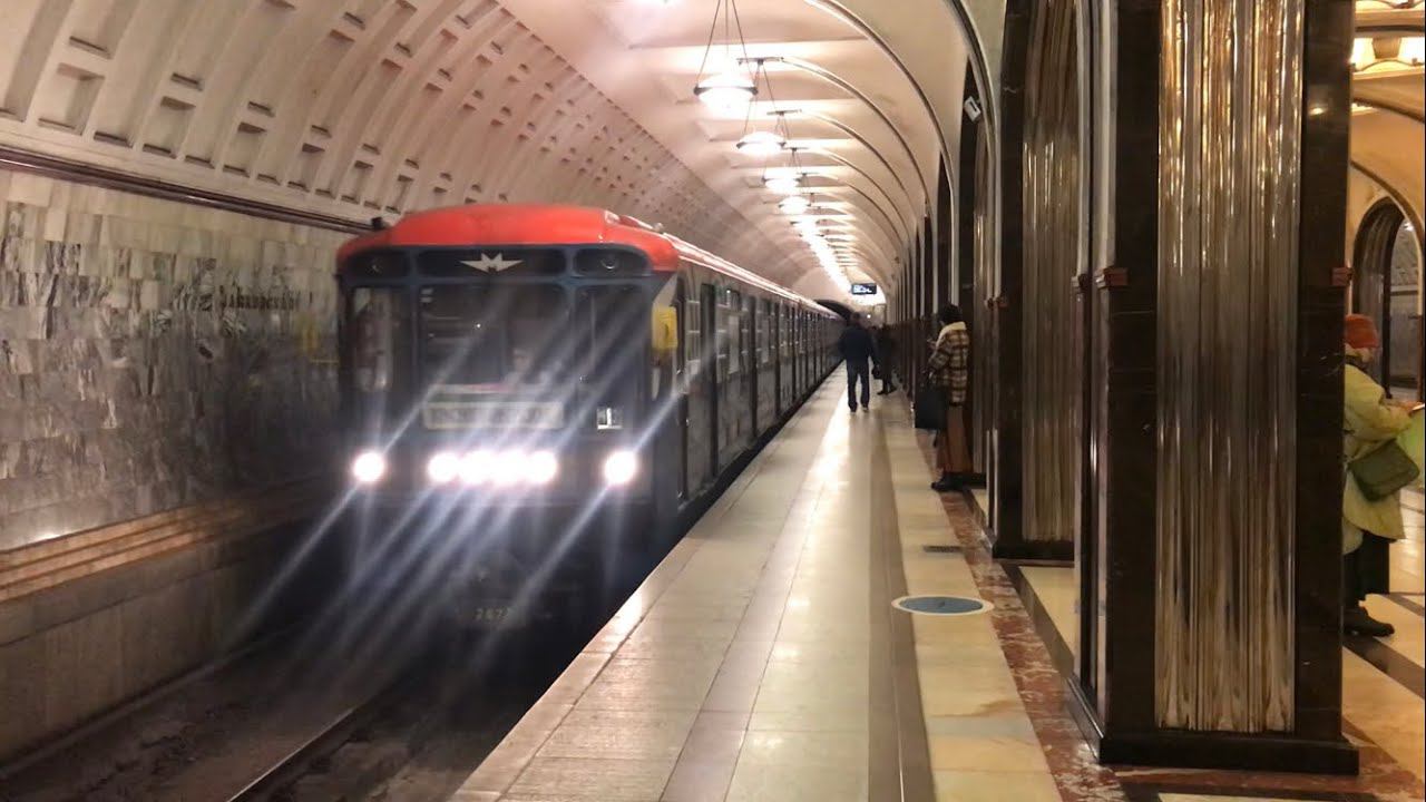 Номерной "Московский Бренд" Прибывает на станцию Маяковская.