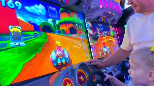 Alice was playing different games. We rode on the rides. I drove a car, a motorcycle, shot a toy gun. I was able to collect a lot of tickets #attraction #magicplanet #malloftheemirates #games