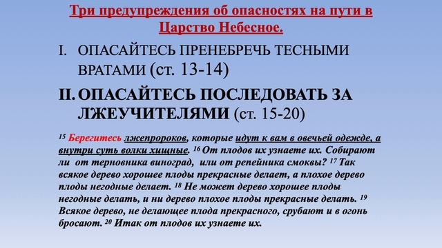"Предупреждения о царстве Иисуса Христа" (Матф. 7:13-20) | ЦЕРКОВЬ SOLA GRATIA