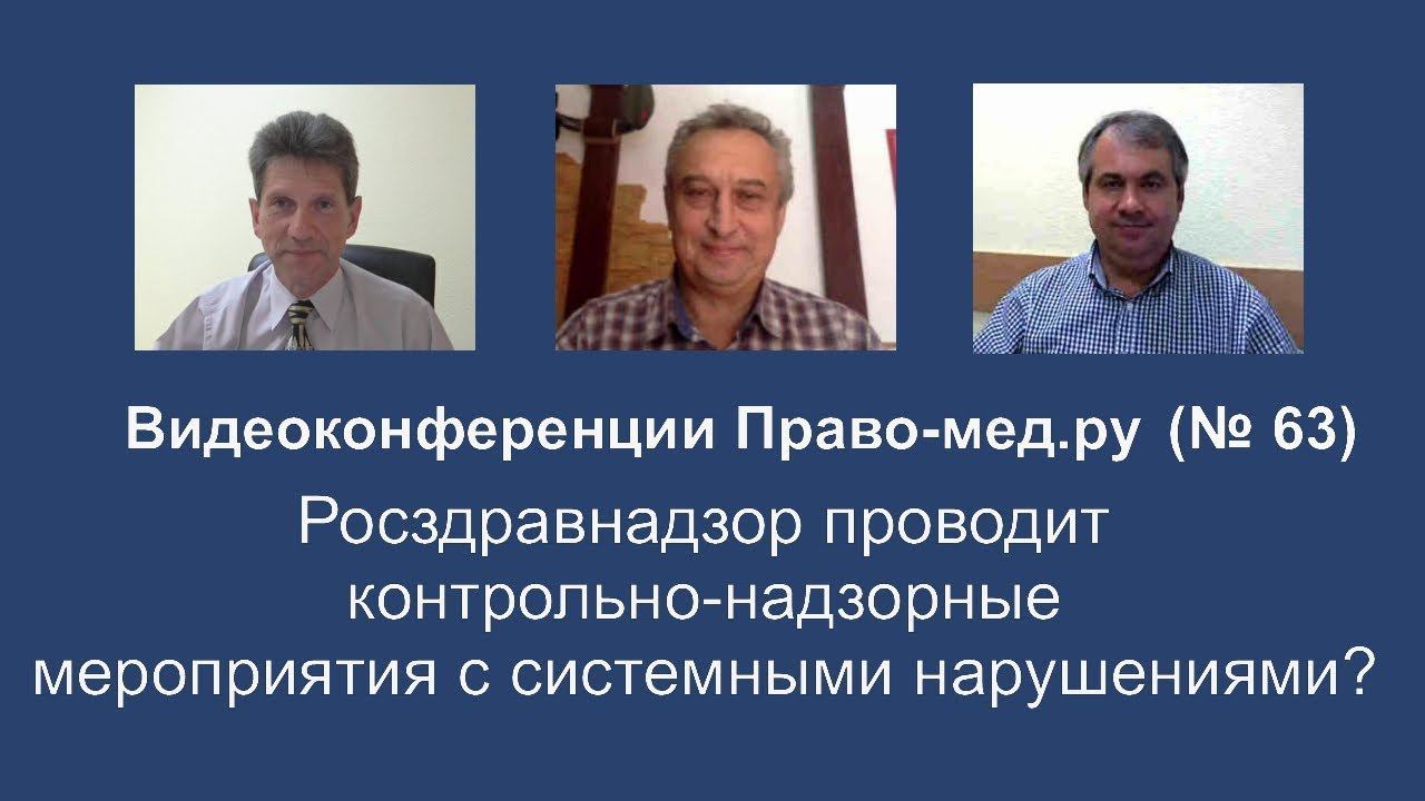 Видеоконференция Право-мед.ру № 63 от 17 августа 2017 года, на которой обсуждались результаты проверки Счетной палаты Федеральной службы по надзору в сфере здравоохранения Тема: «Росздравнадзор проводит контрольно-надзорные мероприятия с системными нарушениями?» Рассмотренные вопросы 1. Причины нарушений 2. Влияние системных нарушений на качество и безопасность медицинской деятельности 3. Рекомендации Росздравнадзору по улучшению контрольно - надзорной деятельности Участники Панов Алексей Валентинович, главный редактор информационного портала Право-мед.ру, г. Омск , член АЮР Давальченко Иван Иванович, начальник юридического отдела БУЗОО "Родильный дом №2" , г. Омск,член АЮР Васильев Игорь Валерьевич, доцент кафедры общественного здоровья и здравоохранения НГМУ, г. Новосибирск, член АЮР