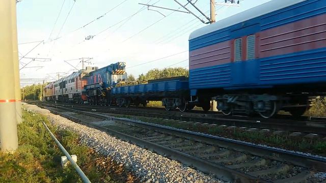 !СУПЕРЭКСКЛЮЗИВ! Пассажирский тепловоз ТЭП70БС-087 тянет хозяйственный поезд