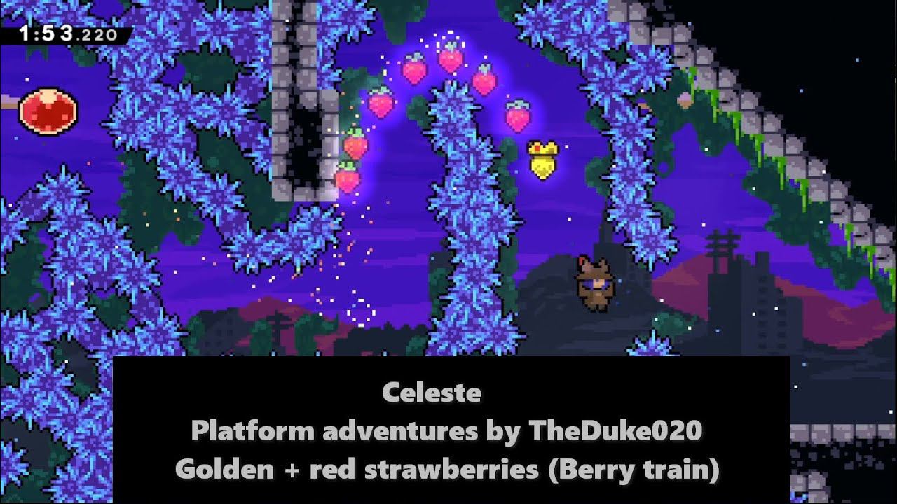Celeste Platform adventures by TheDuke020 Golden + red strawberries Berry train